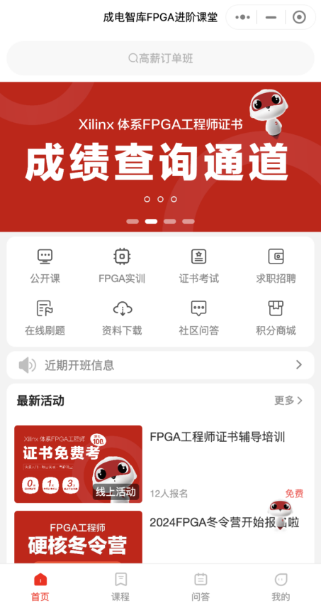 为了让学生们方便参与冬令营,我们特地开发了“成电国芯FPGA人才培养基地”的微信小程序。学生们只需打开微信小程序搜索并报名参加感兴趣的课程即可。该小程序上有详细的课程介绍和时间安排,学生们可以根据自己的兴趣和时间选择适合自己的课程。