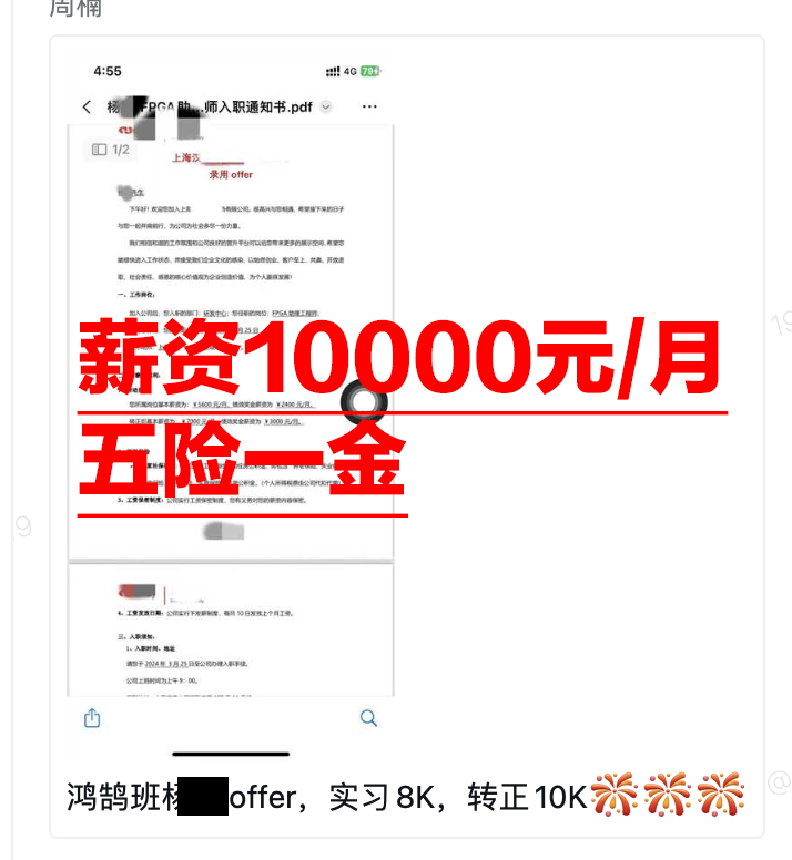 4月初,成电国芯、成电少年学FPGA就业班的同学们已经陆续收到了来自企业的OFFER,这也说明了他们在FPGA领域的技能和能力得到了企业的认可。同时,这也反映出FPGA工程师在市场上的需求较大,具有较高的就业竞争力。