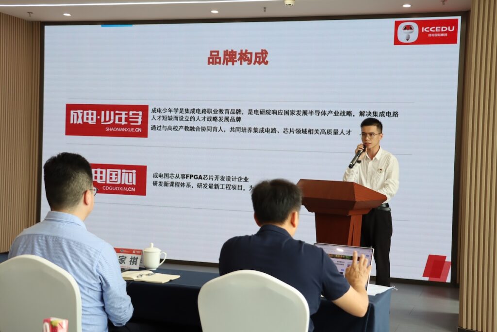 邓总监介绍了人才基地的使命。成电国芯集团是响应国家发展半导体产业战略,解决集成电路人才短缺而成立的人才战略发展品牌。通过与高校产教融合协同育人,共同培养集成电路、芯片领域相关高质量人才。通过自身的产业资源背景、教育平台依托、人才与产业对接的成熟运营理念,为国家解决端到端的难题。