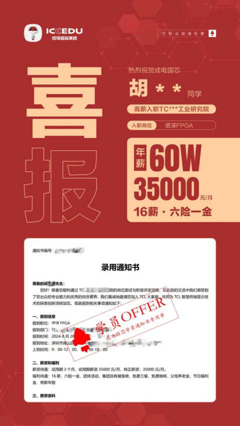 一、喜讯快报!成电国芯又一学员成功拿下高薪offer!