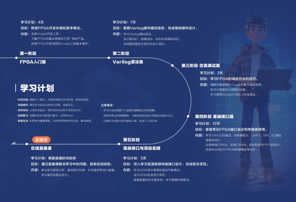 这份FPGA兼硬件工程师初级线上课程请收好!30天的时间带你快速入门。本次课程分为五个阶段!