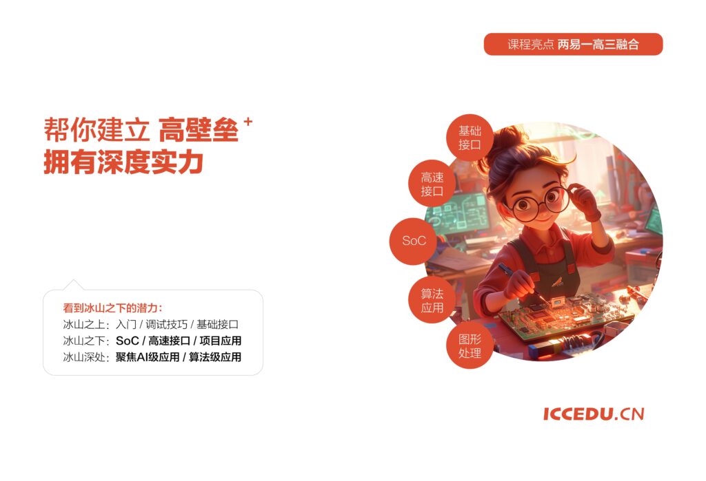 成电国芯的课程历经 6 次迭代,始终保持与时俱进。不仅增加了高速接口,如 PCIE、千兆网、光纤等,还融入了 6 大实战工程,如图像处理、图像识别等。这些丰富的内容让学员能够深入了解 FPGA 在实际应用中的各种场景,提升他们的综合能力和竞争力。