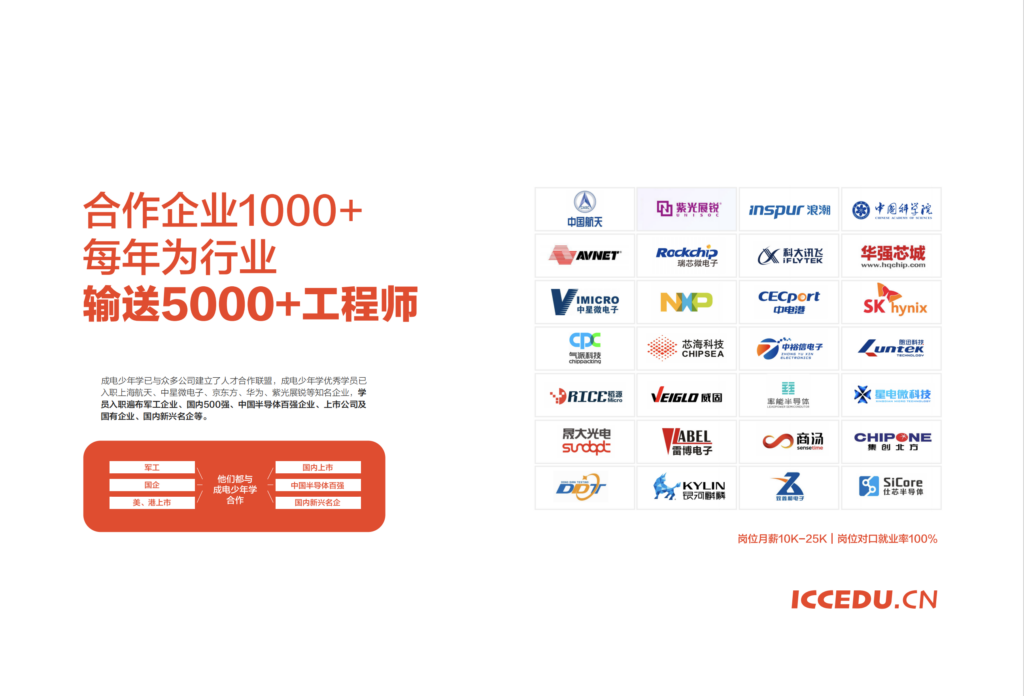 成电国芯的课程来源于企业端的实际需求,并且经过了 400 家企业的严格验证。这意味着学员在成电国芯所学到的知识和技能,与企业的实际需求高度契合,能够快速适应工作岗位。众多企业对成电国芯的学员赞誉有加,他们在工作中展现出的扎实专业素养和出色的实践能力,让企业对成电国芯的培训质量高度认可。