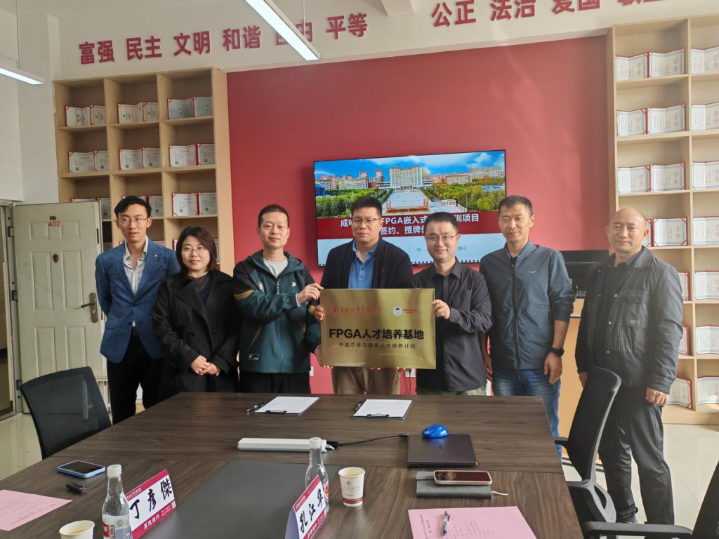 为进一步加强与优质企业的深度合作,促进信息与智能工程学院各专业产教深度融合,培养更具实践能力和创新精神的人才,拓宽学生实习和就业渠道。3月28日,信息与智能工程学院在信息中心402,举行成电少年学FPGA嵌入式课程实训项目签约授牌仪式,成电少年学(广东)教育科技有限公司总经理邓祺、云南经济管理学院副校长宋飞宇、信息与智能工程学院院长李红育、党总支书记武彦平、副院长滕人超、产教融合办公室丁彦傑、实践中心主任李敏、专业负责人孔江华、张仁蜜参加了此次活动。