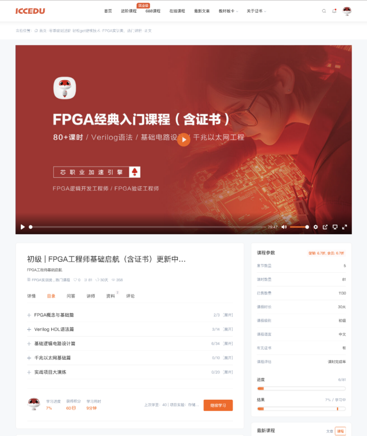 成电国芯线上课程,开启 FPGA 高效学习之旅