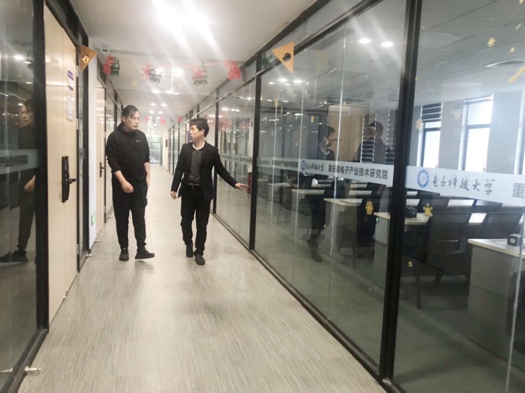 2022年3月22日为加深校企合作,优化人才培养模式,定制培养应用型人才,重庆人文科技学院凌山主任专程来到成电少年学重庆微电子产业技术研究院交流工作,由成电少年学张辉总经理陪同参观。