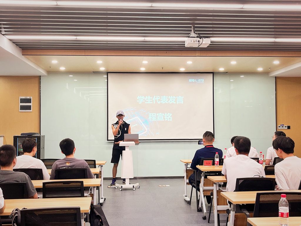 最后仪式在班级代表的发言、同学们的宣誓中圆满结束。同学们将正式进入课程的学习阶段,在未来的几个月里,同学们将经历一段快乐切充实的学习生活。这段时间的经历也将成就更好的自己。祝愿同学们100天后遇见最好的自己。中国芯加油!