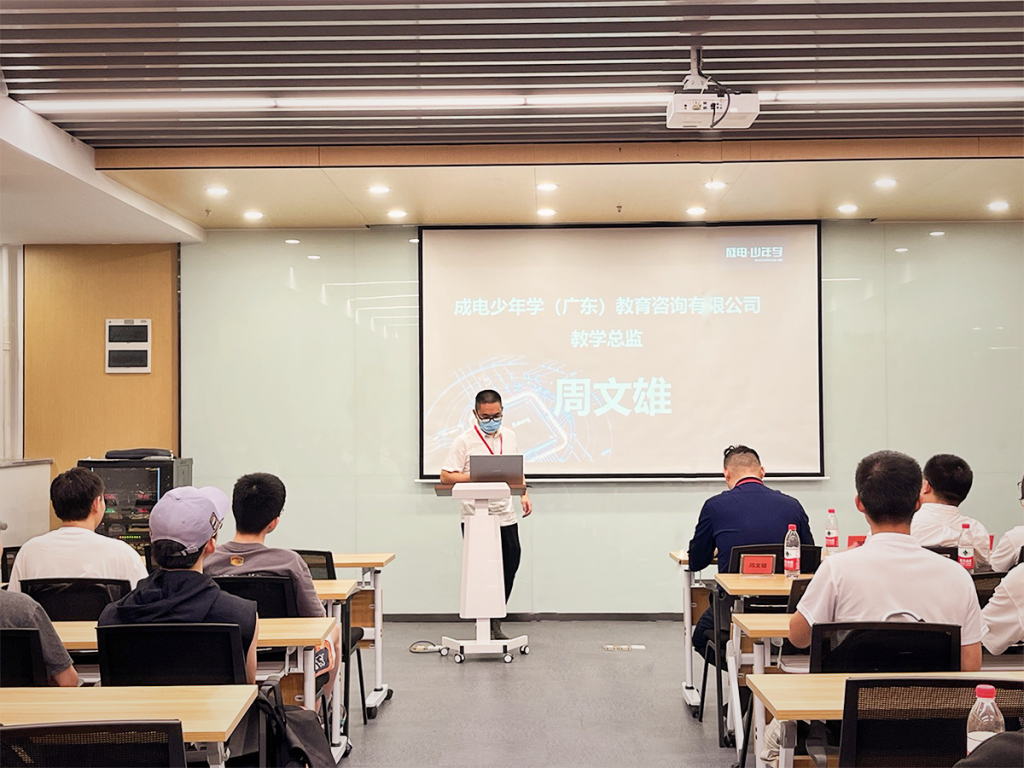 在开班仪式上,成电少年学张辉总经理致辞。介绍了成电少年学的品牌起源、品牌使命、品牌价值;成电少年学致力于中国芯百万精英人才培养,成为同学们、企业们的终身伙伴,帮助同学们规划一份终身职业,帮助企业招聘、培养高质量、复合型工程师。
