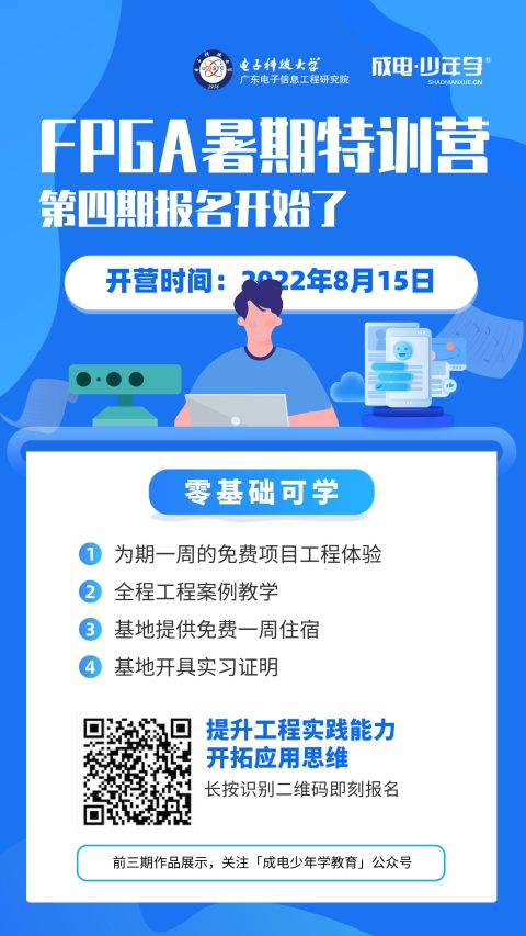 2022年7月29日成电少年学FPGA暑期特训营(重庆站),第一期、第二期、第三期顺利结业。来自各个高校的同学们,在放假后第一时间到了基地,不畏炎热(重庆7月份比较热),马上进入了学习的状态。因为同学们的热爱、热情,特训营的学习氛围格外的浓厚。积极的互动、思考、交流,让特训营更具实践和思维上的开拓。