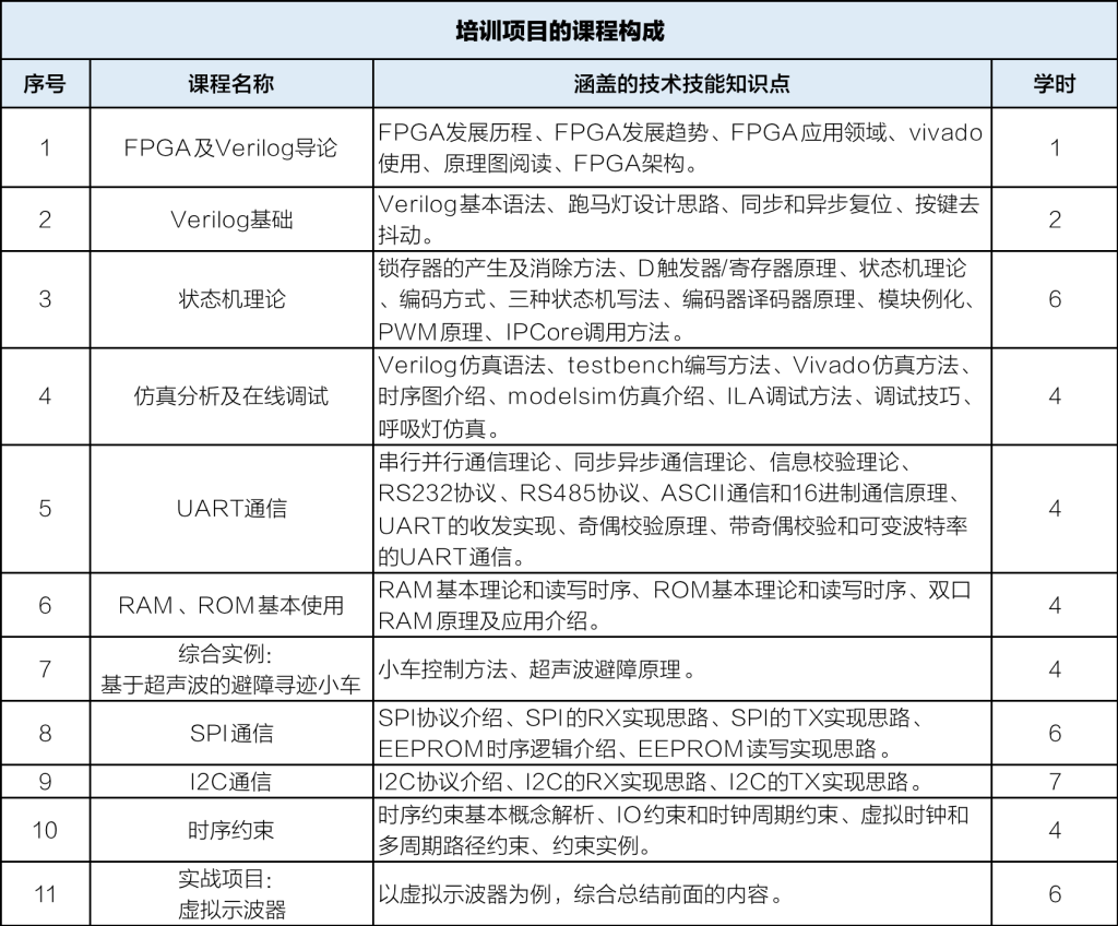 此次FPGA师资培训将贯彻“打牢基础,学以致用、项目教学”的精神来开展。
