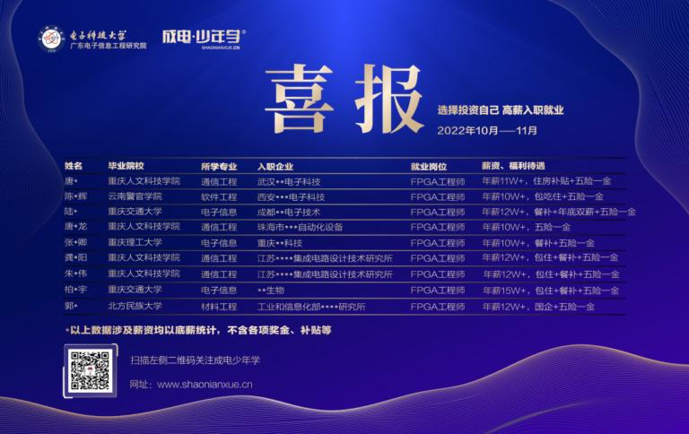 FPGA工程师岗位需求,随着中国芯发展在各个行业,应用非常广泛。为更好的培养出复合型、高质量FPGA工程师,成电少年学历经三年时间课程研发、沉淀,培养出来几千名合格的FPGA高级工程师,并成功进入到各个企业发挥价值。在过往的人才培养中,成电少年学也经常被很多同学问到,没有基础是否可以学习FPGA课程?有没有一套系统、完整的小白入门课程?